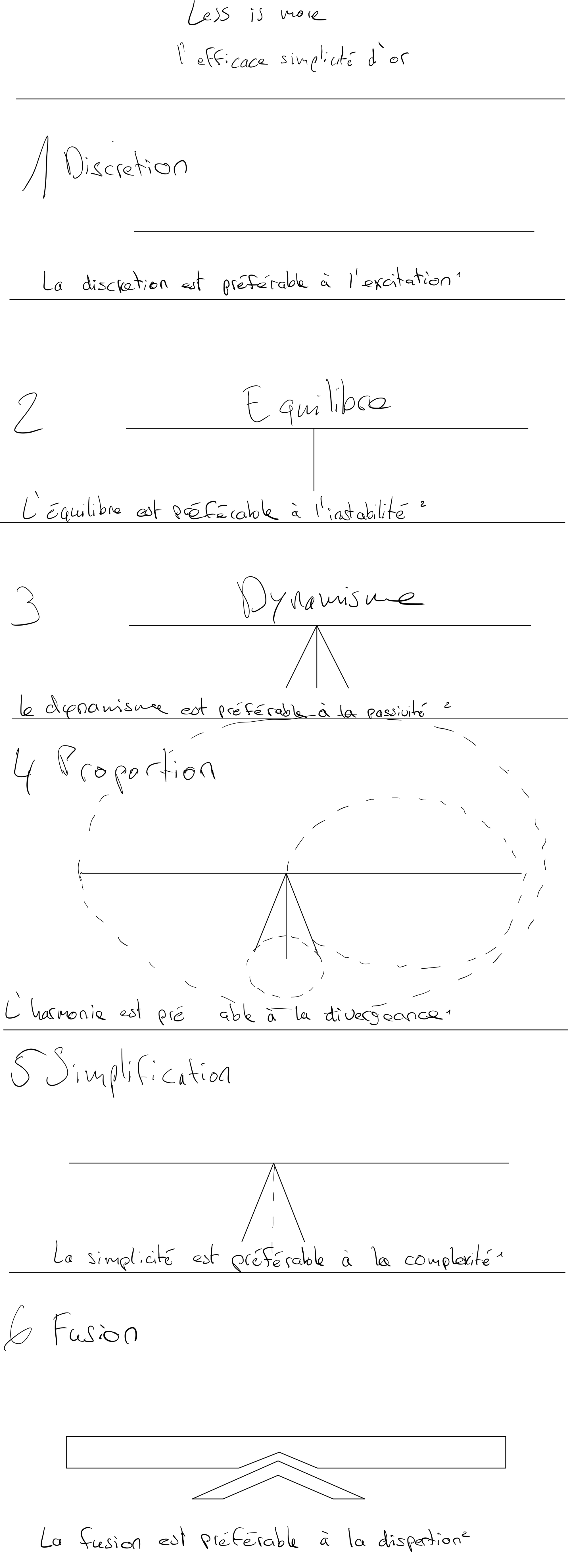 Une infographie comprenant les origines, les règles de composition, les multiples applications et l’utilisation du nombre d’or dans le "Less Is More".